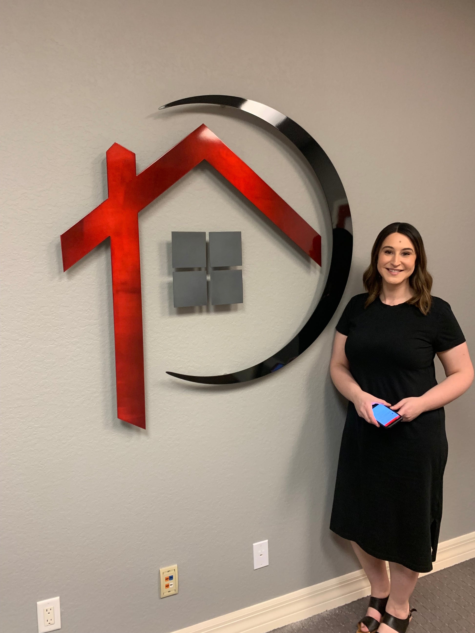 Scope of work: 11 Ga Steel Sign Rooted Therapies with the tree inside 46 inch circle and powder coated in Splatter Emerald. All pieces of the sign will stand-off the wall 1.5 inches to show depth. The Center circle will be Back lit with LED lights. These LEDs can be adjusted to custom color and Color Temperature. This includes the installation of the sign. Does not include any electrical work. The total for the sign is $900.00 Plus Tax.